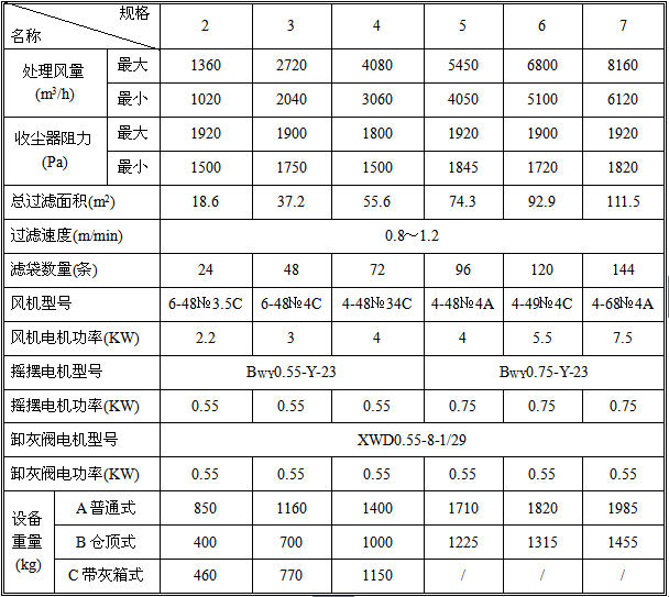 規(guī)格:該單機收塵器有2、3、4、5、6、7六個規(guī)格。