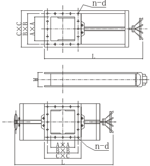 該閘門主要由框架、絲桿螺母、手輪、閘板組成,手輪(鏈輪)轉動,絲桿帶動絲桿螺母和閘板作水平方向的往復運動,達到閘門的啟閉目的。