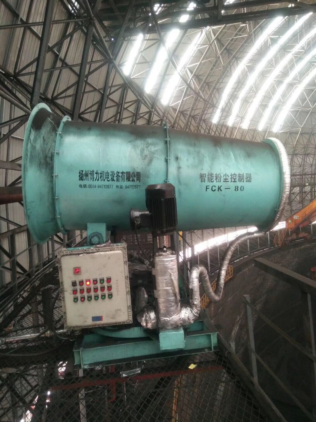 項目地位于山西省臨汾地區霍州市的國電華北電力有限公司霍州發電廠,國電霍州電廠年耗煤量300萬噸左右,日耗煤約1萬噸,均為汽車來煤。本工程煤場設計為環形圓煤場,直徑110m,高度擋煤墻上部網架高度40米。該項目使用三臺FCK-HB80防寒防爆型遠程射霧器。