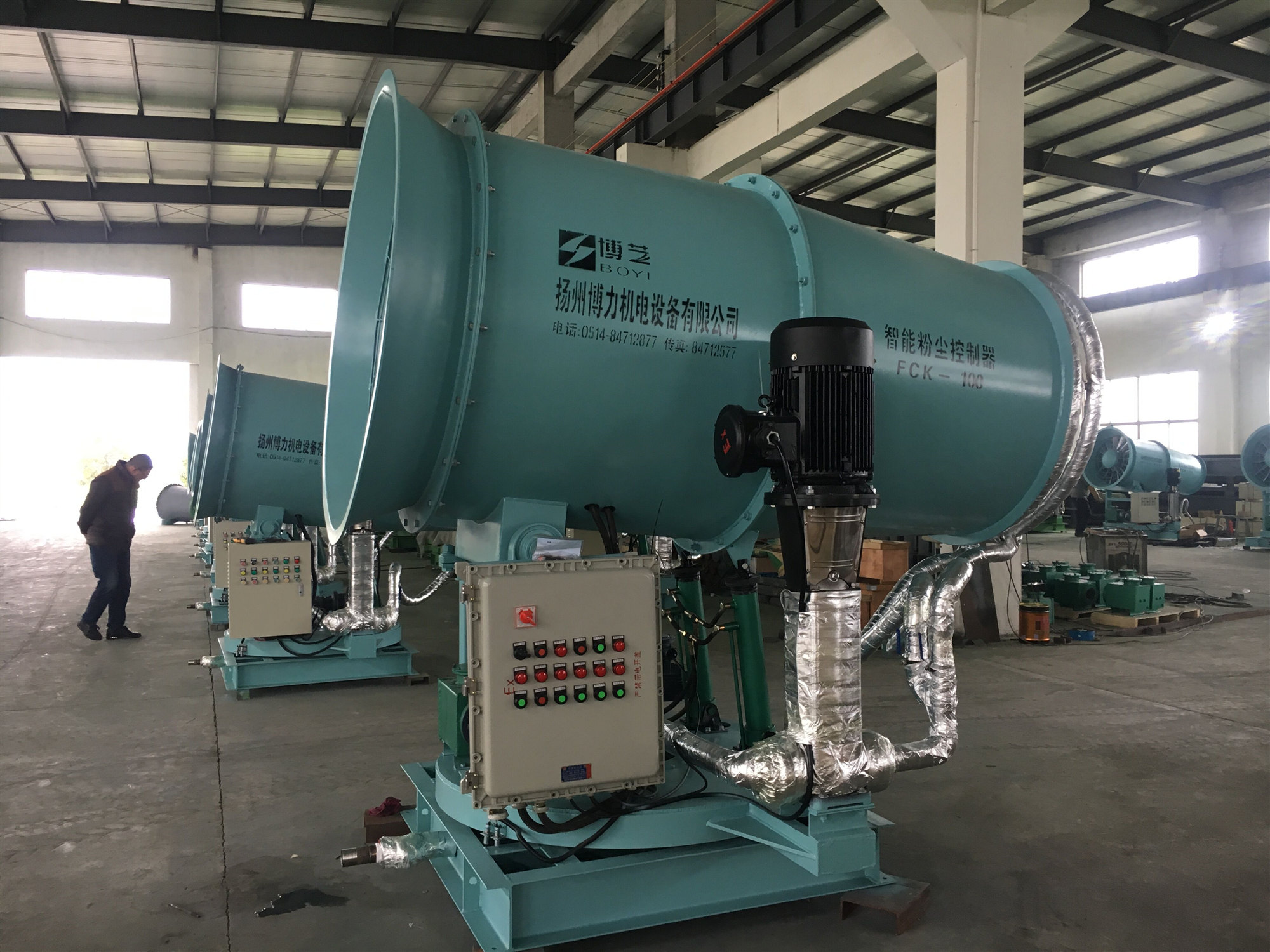 儲煤場寬度約80米,長度約452米,總投影面積約36160㎡,共設“博藝”牌防寒防爆型智能粉塵控制器(BL/FCK-HB50,BL/FCK-HB60,BL/FCK-HB100)周運轉儲煤能力達到10萬噸,滿足3—5天堆儲能力。場地中部有橫跨高壓線(不改線),設計分為南、北2個儲煤棚進行封閉,南棚高33.0米,寬80.7米,長267.3米,建筑投影面積約為21571㎡,煤棚內設BL/FCK-HB50型2臺,BL/FCK-HB60型防寒防寒型智能粉塵控制器8臺噴霧抑塵降塵。北棚高33.0米,寬78.6米,長150.0米,建筑投影面積約為11790㎡。設BL/FCK-HB100型防寒防寒型智能粉塵控制器2臺噴霧抑塵降塵。