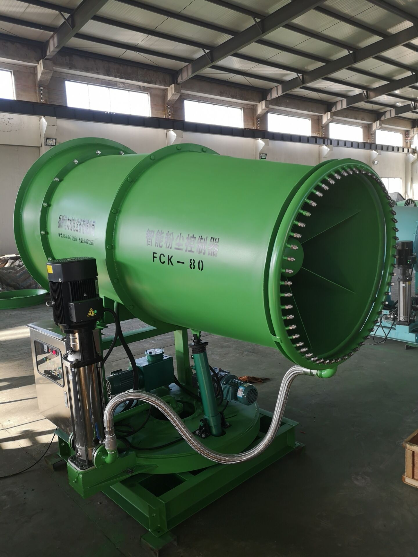 汽車卸煤時粉塵飛揚較為嚴重,運行人員的工作環境惡劣,也影響電廠的安全文明生產,因此汽車卸煤采用BL/FCK-80型遠程射霧器抑塵。同樣,封閉煤場的堆料帶式輸送機的頭部落料點和尾部受料點設BL/FCK-80型遠程射霧器抑塵,盡量減小煤塵飛揚。