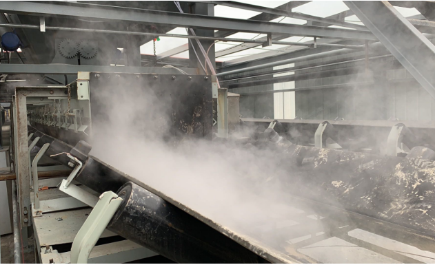 新余鋼鐵有限公司綜合料場智能環(huán)保儲(chǔ)煤子項(xiàng)目4.3m焦?fàn)t環(huán)保節(jié)能易地升級(jí)項(xiàng)目干霧抑塵裝置系統(tǒng),用于除塵灰簡易回送坑的微霧抑塵。除塵灰簡易回送坑的上部受料部分,以及下部振動(dòng)給料機(jī)排料處,四周設(shè)超聲波干霧噴嘴組,噴霧形成的10微米顆粒的干霧水幕將粉塵抑制在水幕中。